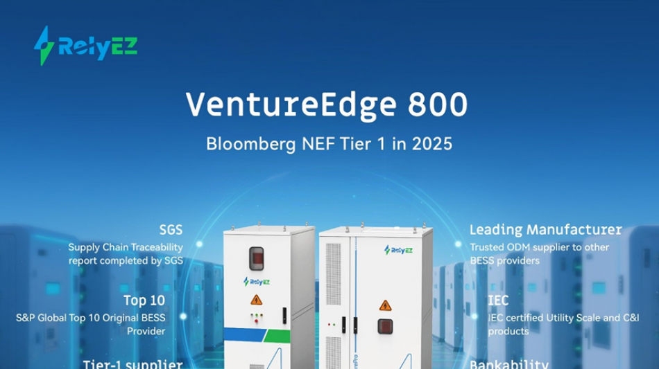 RelyEZ lanza VentureEdge 800, su nuevo sistema de almacenamiento energético de 800 V para Europa